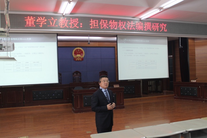 2019年4月25日下午,苏州大学王健法学院特聘教授、博士生导师董学立老师莅临我院开展题为“担保物权法编纂研究”的讲座,由福州市中级人民法院审判委员会会员、民事审判第二庭庭长、四级高级法官林秀榕担任评议人,两位分别从自己的专业领域对讲座主题展开了精彩的探讨,呈现了一场别开生面的法官与学者的对谈。本次讲座由福建师范大学法学院主办,法学院院长林旭霞教授主持,法学院副院长张莉教授等众多师生到场参加了本次讲座,老师同学们济济一堂。主持人林旭霞院长首先对两位到场嘉宾进行了简短的介绍,并且对本次对谈表示了期待。