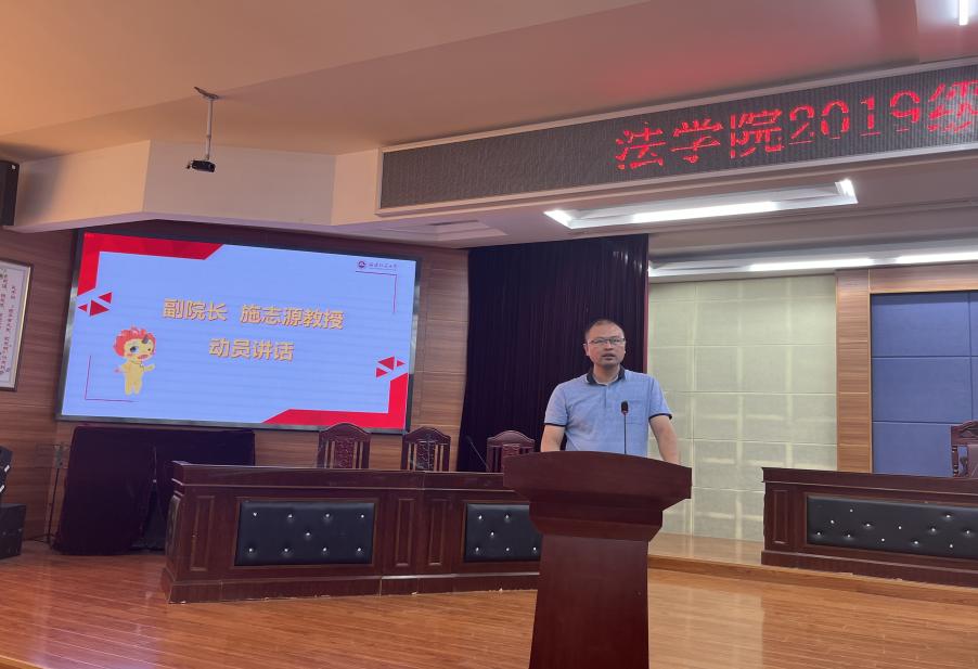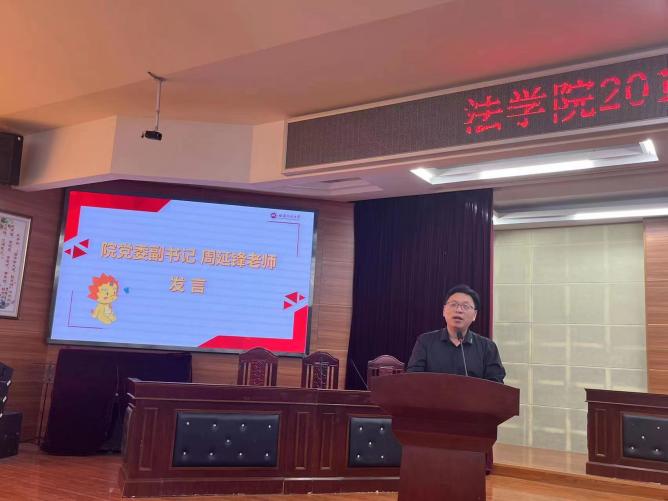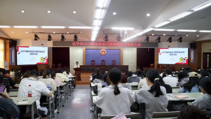 2022年11月18日上午,法学院在模拟法庭召开2019级毕业实习暨毕业论文动员大会。院党委副书记周延锋,副院长施志源教授,教学秘书陈琳娜老师以及2019级全体学生参加动员会,会议由2019级辅导员赖丽慧老师主持。