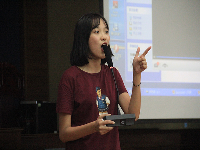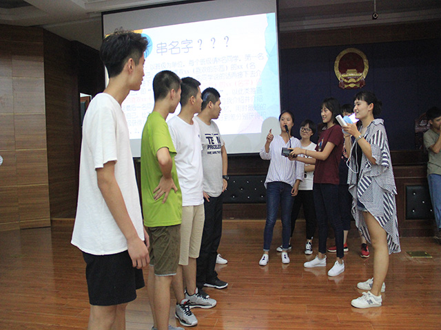 在活动初始,学长学姐们进行了简单的自我介绍之后便进入了互动游戏环节。游戏环节包括了:“串名字”、“七手八脚”、“团结就是力量”、“撒网捞鱼”。“串名字”游戏让来自五湖四海的同学们互相了解各自的兴趣爱好与名字,同时也勾起了新生们的热情。在“七手八脚”中大家那各种奇异的姿势更是将现场气氛带到了高潮,计时的学长学姐也被代入其中,紧张地高喊着“5、4、3、2、1”。在“团结就是力量”与“撒网捞鱼”中,新生们为了集体荣誉,互相扶持,互相鼓励,一起呐喊,为最后的胜利都付出了自己的努力,一个班级凝聚力的雏形正渐渐形成。最终一班同学斩获桂冠。在游戏期间,2016级的张啸锋、林一锟同学为大家带来了激情彭拜的吉他弹唱,现场充斥着欢呼;何雨玫同学的一首《致姗姗来迟的你》更是圈粉无数。