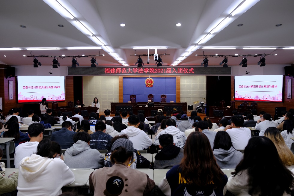 为深入学习贯彻党的二十大精神,增强广大共青团员荣誉感、使命感和责任感,切实加强共青团组织队伍建设和仪式教育,20221130日下午,法学院2021级团总支于模拟法庭举办“学习二十大、永远跟党走、奋进新征程”入团仪式。