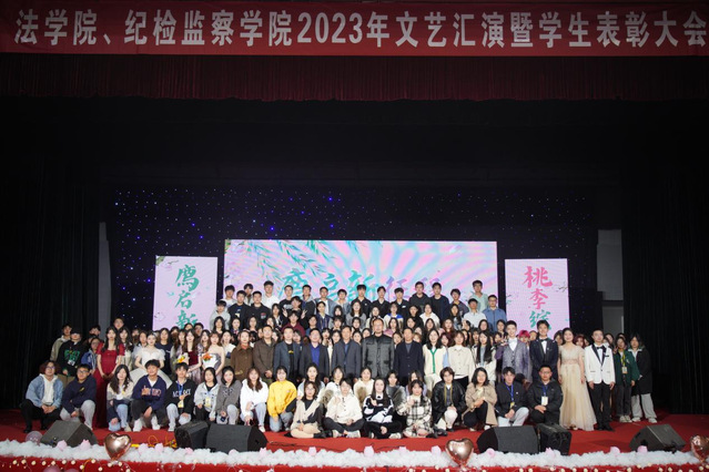 3月19日晚,法学院、纪检学院2023年文艺汇演暨学生表彰大会在图书馆大礼堂隆重举行。法学院党委书记陈文、党委副书记周延锋、副院长施志源、院工会主席林少东、院团委书记金君敏、各年级辅导员莅临现场,和学院学生代表及来自各学院的嘉宾共同观看晚会。
