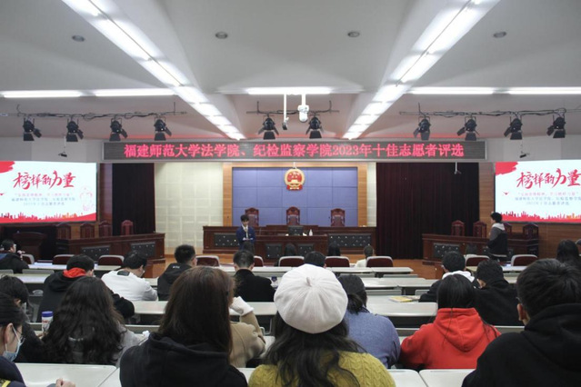 为深入贯彻落实习近平总书记关于志愿服务以及深入开展学雷锋志愿服务的重要指示精神,充分发挥先进典型的示范引领作用,激励和引领广大青年志愿者积极投身志愿服务事业,3月29日,法学院、纪检监察学院开展以“弘扬雷锋精神,学习榜样力量”为主题的十佳志愿者评选活动。活动邀请法学院团委书记金君敏老师、2022级兼职辅导员张秋华老师、法学院团委副书记谢紫琳同学、校青年志愿者中心执行主席吴书凡同学和第四届福建师范大学志愿服务项目大赛金奖团队负责人王钰童同学担任评委。