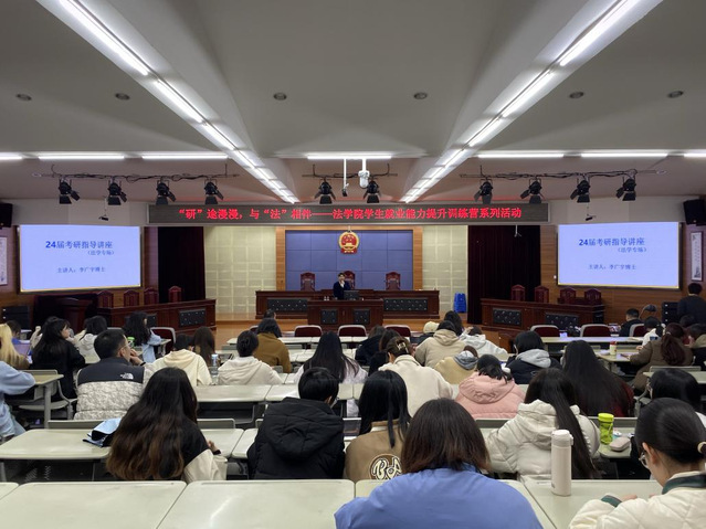 近日,法学院在模拟法庭开展以“‘研’途漫漫,与‘法’相伴”为主题的学生就业能力提升训练营系列活动。活动主要针对研究生考试和法律职业资格考试,开展考情分析与备考策略指导。