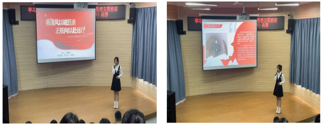 决赛中,潘雅煊同学紧扣时代主题,以时代视角展开国家发展画卷,展现中国前行的顽强姿态,以巨大的底气与自信迎接挑战,在新时代中立足潮头,争创辉煌。