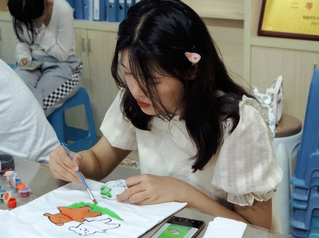 活动伊始负责人以“妙笔搴行,追光绘心”为主题,对活动的背景、目的进行简要介绍通过绘画疗法,让同学们伴随着轻柔的音乐,在帆布袋上自由创作,在此过程中获得理解与满足。同学们在完成作品后进行了交谈,分享了自己的创作流程和感受,在交流过程中增进对彼此的了解和友谊,起到了良好的心理疏导效果