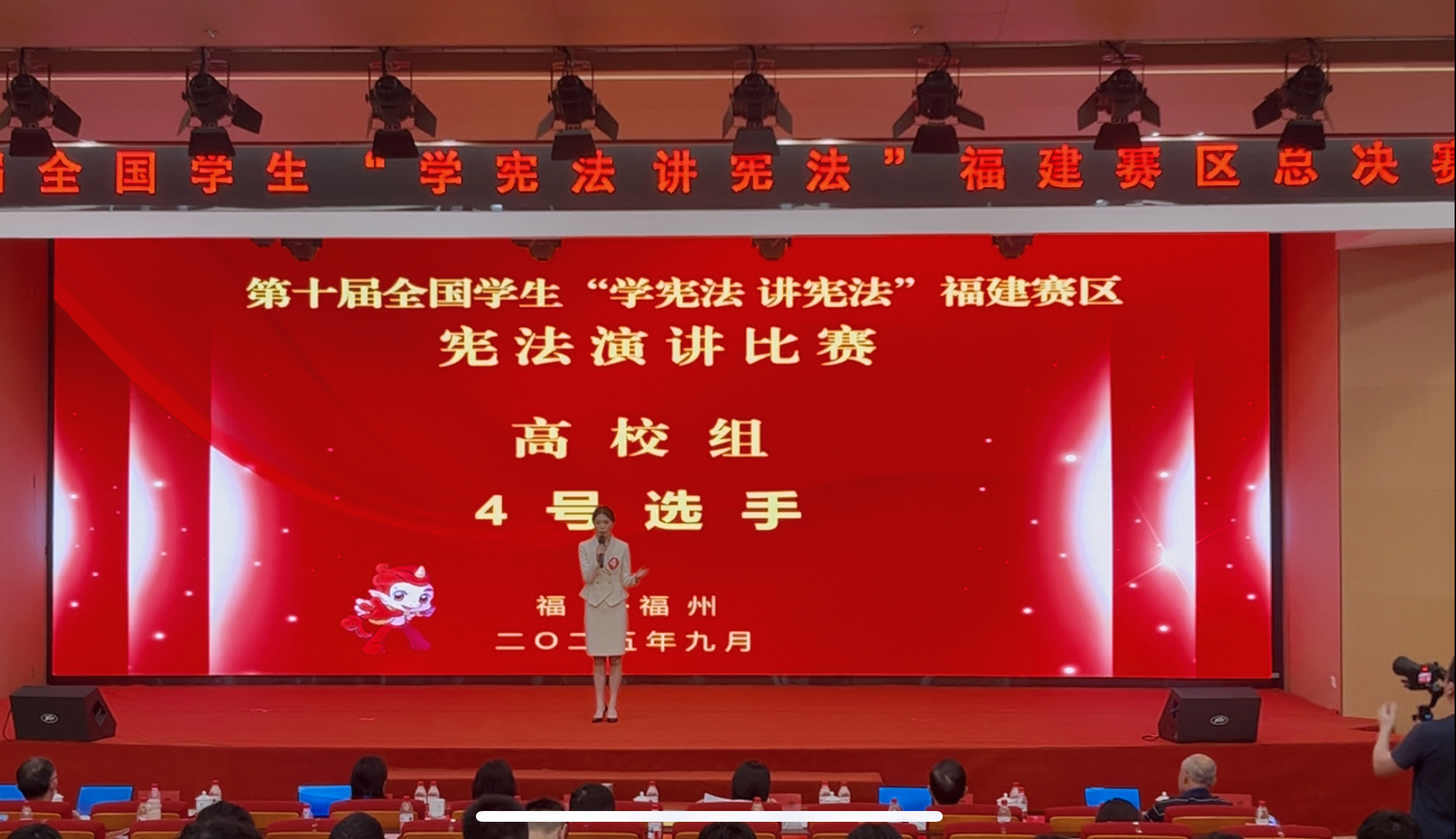 9月27日至28日,第十届全国学生“学宪法 讲宪法”福建赛区总决赛在福州市举办。活动由福建省教育厅、福建省司法厅主办,福建船政交通职业学院承办。经过激烈角逐,我院2024级本科生林开心(指导老师:林诚)荣获高校组演讲比赛一等奖;2023级本科生吴永超(指导老师:李治莹)荣获高校组法治素养竞赛一等奖。