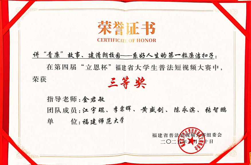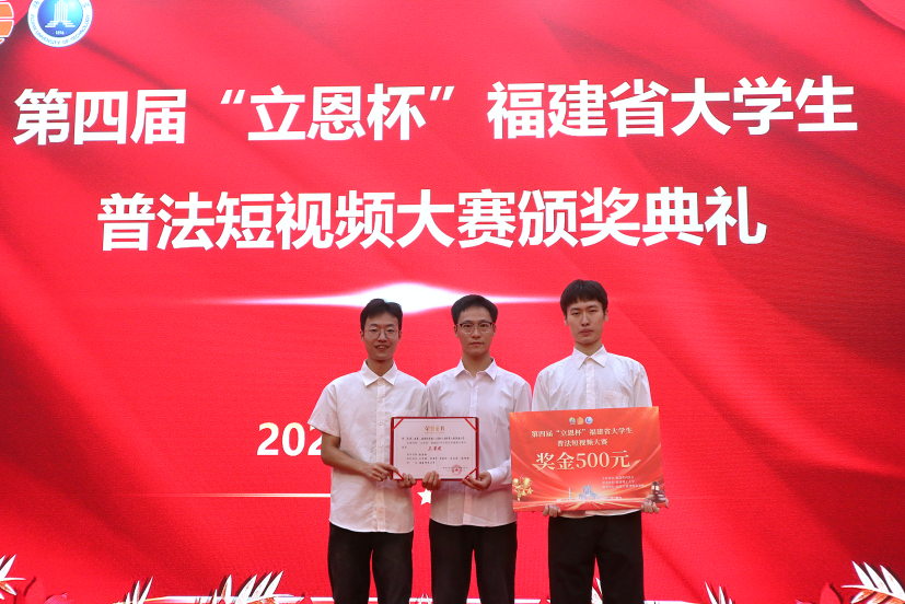 10月20日下午,第四届福建省大学生普法短视频大赛颁奖典礼在福建理工大学学术报告厅顺利举行。活动由福建省司法厅主办、福建理工大学承办、福建立恩律师事务所协办。