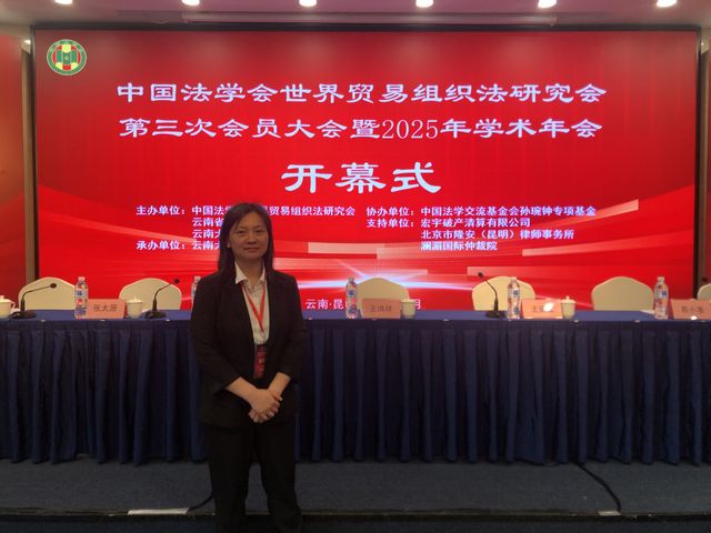 2025年12月13-14日,中国法学会世界贸易组织法研究会在昆明召开第三次会员大会暨2025年学术年会,我院郑丽珍老师当选为中国法学会世界贸易组织法研究会第三届理事会理事。中国法学会世界贸易组织法研究会于2001年8月29日在北京成立,旨在团结和组织全国法学工作者、法律工作者,密切联系我国实际,开展世界贸易组织法的研究,为推进依法治国、建设社会主义法治国家,为我国参与国际贸易规则的制定和发展,为建立国际经济新秩序服务。该研究会是目前国内法学、法律界规模最大、覆盖最全、层次最高的世界贸易组织法研究机构。本届年会聚焦中国的制度型开放与多边协同、多边贸易体制的挑战和应对、WTO改革的核心议题与机制完善、数智与新兴领域规则重构与风险应对等前沿议题展开学术交流。