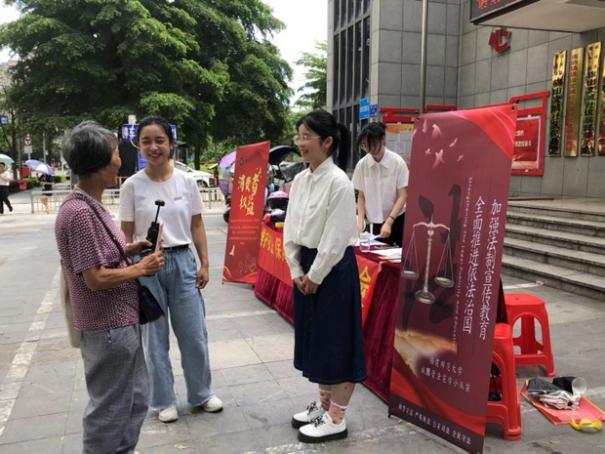 信念在奋进中坚定,青春在奉献中闪光。“诚廌普法宣传”实践队将爱心化为行动,以奉献扬青春,通过开展这样“接地气”又“干货满满”的宣讲志愿服务,把法律和生活紧紧结合在一起,进一步提升居民群众树立尊法、学法、守法、用法的意识,以法正己,砥砺德行。