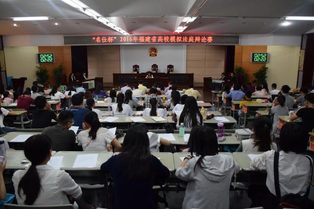 5月14日至15日,由福建省教育厅主办、我校和福建省法学会承办、福建名仕律师事务所协办的2016年“名仕杯”福建省高校模拟法庭辩论赛在我校旗山校区模拟法庭拉开帷幕,来自全省10余所高校的16支法学专业代表队围绕最新真实案例展开了激烈的法庭辩论。福建省法学会副秘书长宋跃岚、福州中院少年庭庭长林守霖、福清市法院副院长甘力、鼓楼检察院吴俊敏、马尾检察院研究室主任吴奴根、熹龙律师事务所主任刘国田、福建名仕律师事务所合伙人律师黄建峰等应邀担任本次比赛评委。