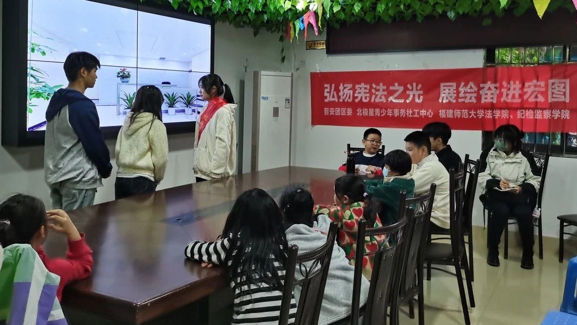 走进中小学,“沉浸式”宣讲。12月1日,福建师范大学法学院、纪检监察学院师生走进福州市小柳小学,采取普法挑战赛形式,设计“过目成诵,启智悉宪——三分钟背诵宪法挑战赛”“旋转乾坤,以知悟宪——宪法大转盘”“趣味宪法,投壶会友——法律投壶PK赛”“廌趣挑战,刮出精彩——刮刮乐+纸条抽奖箱知识问答”“拾字悟法,以诗寄情——‘法律拼贴诗’”五大游园活动,让小学生在在欢声笑语中得到“润物无声”式的教育,让宪法精神真正入脑入心。12月4日,福建师范大学法学院、纪检监察学院联合福建省高级法院、福建师范大学附属中学、福建师范大学附属小学开展“弘扬宪法精神,建设法治校园”宪法宣传周主题活动。通过一堂生动的宪法学习课、一场激烈的宪法知识竞赛、一出精彩的情景剧表演、一次趣味宪法游园会,让宪法知识跳出纸面、入脑入心。