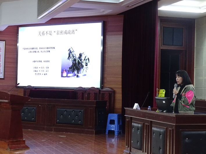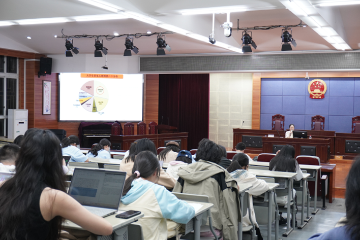 田蜜老师则以“法律人需平衡法理与人情”为核心定位,通过场景模拟和人格测试等互动形式,阐释在人际交往中保持适度边界感的重要性,并提出以“舒适感”为核心、兼具“靠近与退开”弹性的关系原则。她详细介绍了“靠近、退开、修复”三类沟通技巧,并强调“边界感是底线,弹性沟通是智慧”。最后,田老师以“法理为基,人情为桥”鼓励同学们将所学方法灵活运用于宿舍生活中。