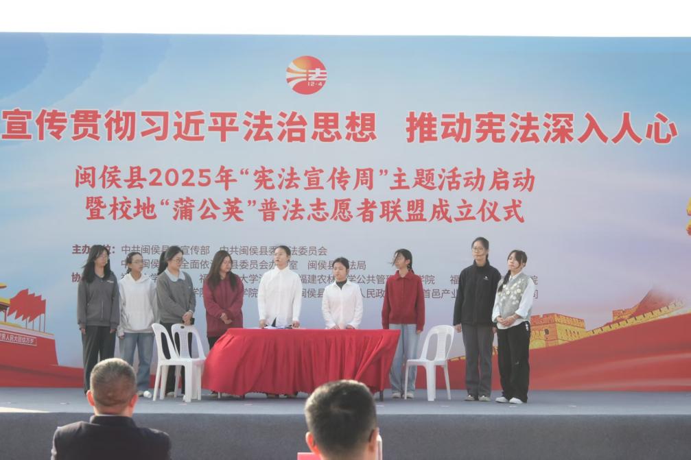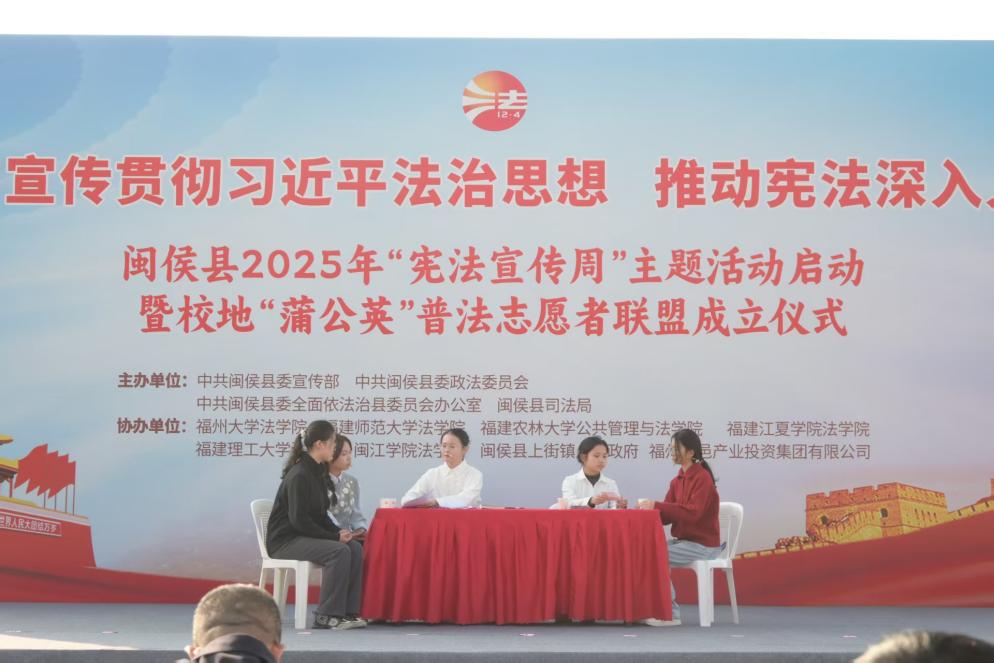 2025124日上午,闽侯县举行2025年“宪法宣传周”主题活动启动暨校地“蒲公英”普法志愿者联盟成立仪式。我(学生)法律咨询与援助中心同学前往福州旗山湖公园北广场进行法治节目表演。成员精心编排演出的普法情景剧《调解室里的烟火气》,以贴近生活的调解故事生动诠释了宪法精神与法治温度,剧情围绕社区纠纷、施工伤害、养老院责任等多类矛盾展开,充分展现了依法调解、情理法交融的实践过程,赢得了现场观众的热烈反响与深刻共鸣。